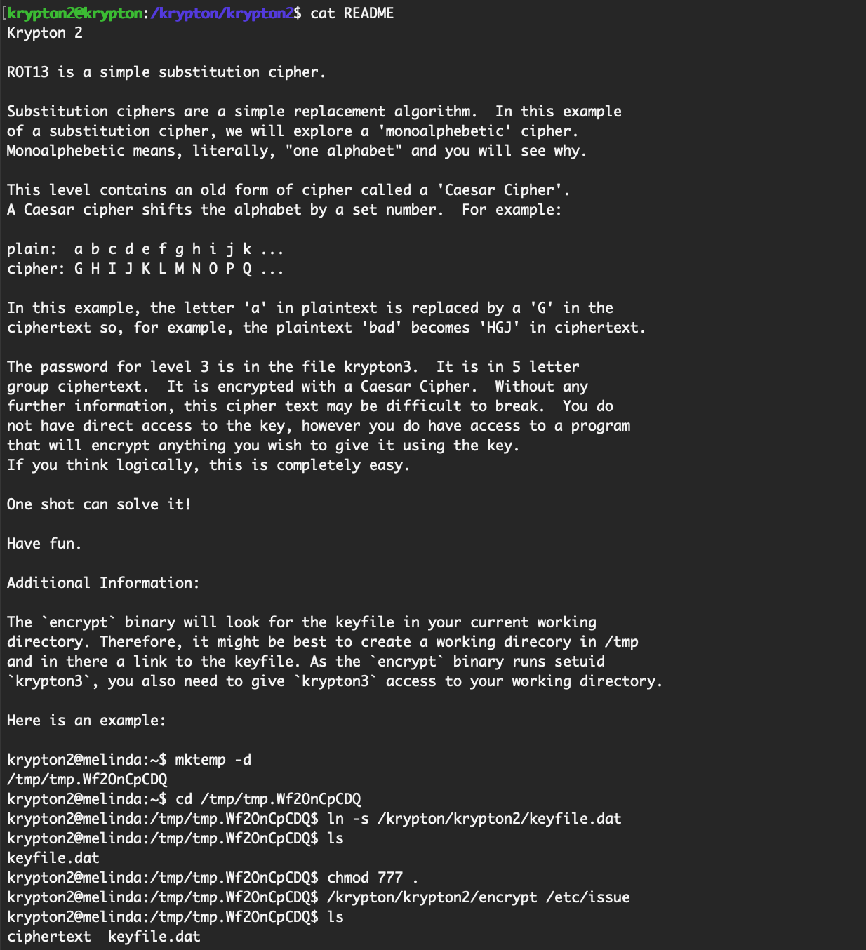 krypton2@krypton:/tmp/tmp.1mLghTok9p$ ln -s /krypton/krypton2/keyfile.dat