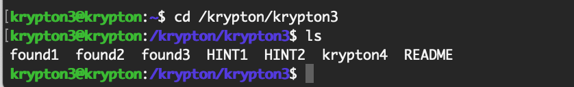 ssh krypton2@krypton.labs.overthewire.org -p 2231We’ll have to cd to the challenge directory again: