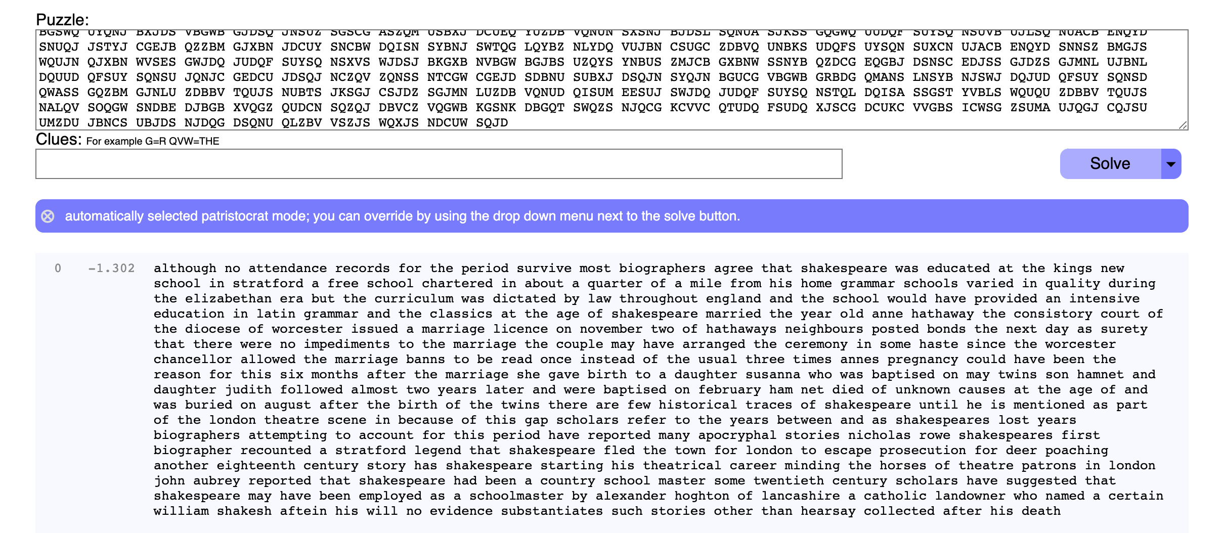Or you can use a tool like quipquip which will solve it for you. To do so, take one of the longer ciphertexts and paste it into the site, then add the password to the end of the ciphertext.