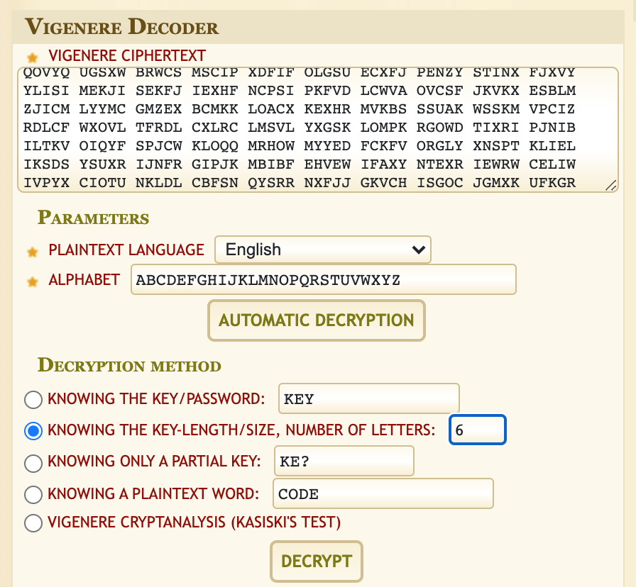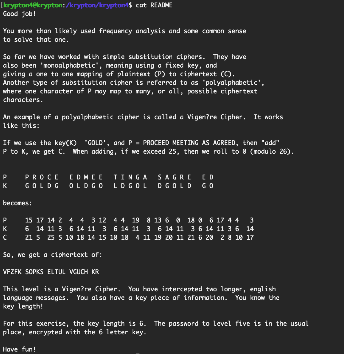 - This level uses a Vigenère cipher, and