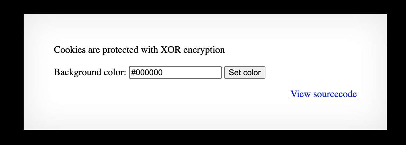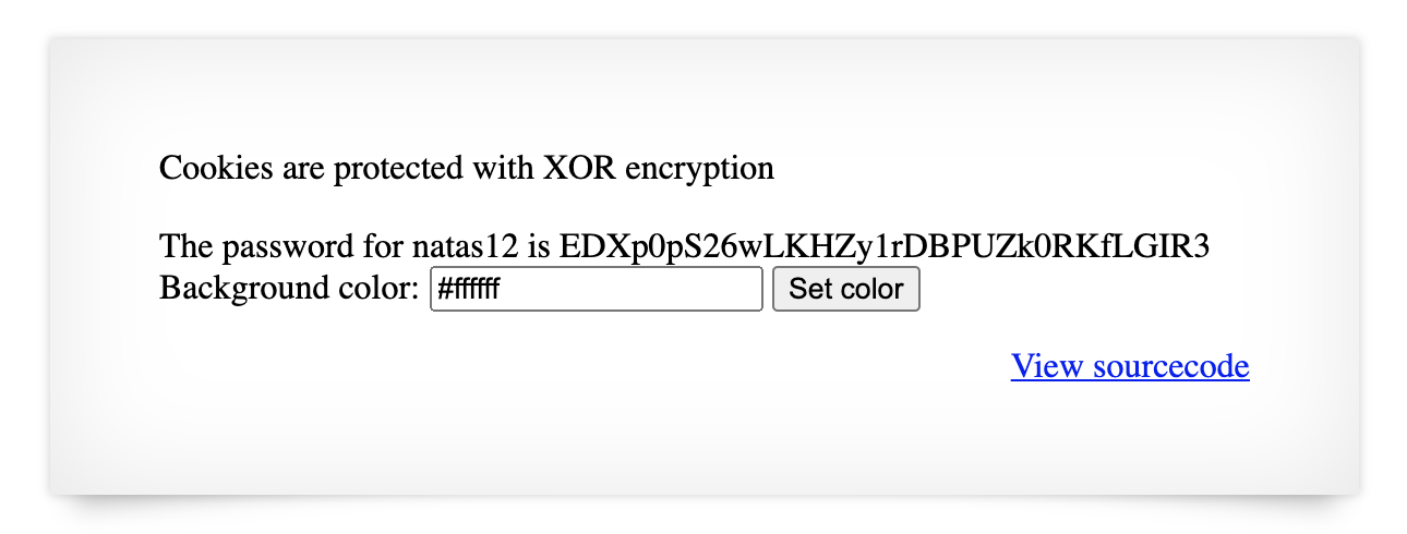 Level 11 (username natas11 and the password found in the previous blog post) opens up with the ability to customize the background color. Finally, dark mode!