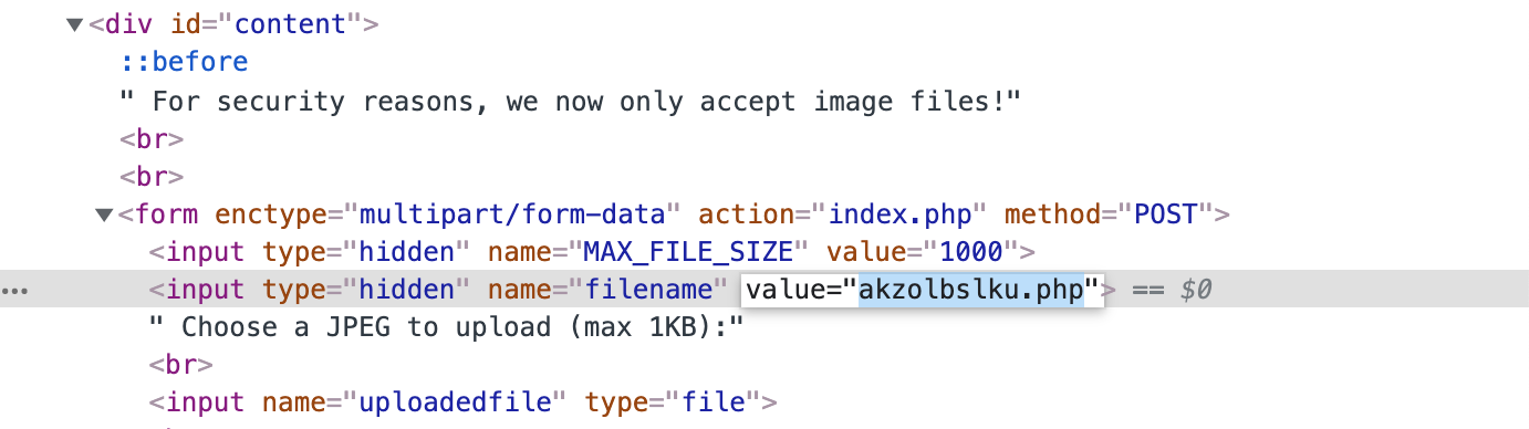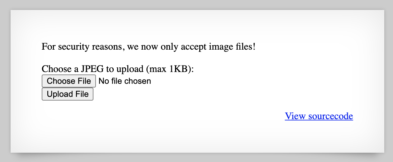 The page says they only accept image files from now on. Let’s take a look at the source code to see how that is implemented. The rest of the file is mostly the same, with the exception of the expanded image processing function. The highlighted line is the change we’re interested in: