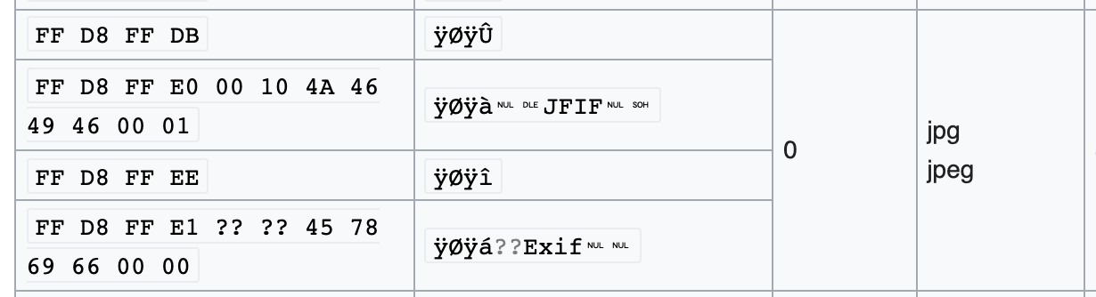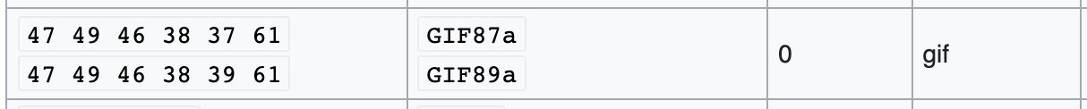In this case, the bytes that make up the magic headers (47 49 46 38 37 61) are all in the ASCII-readable range. But what if we went with JPG and had to prepend the (ASCII-unreadable) characters FF D8 FF EE?