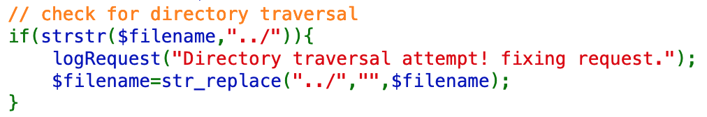 logRequest("Directory traversal attempt! fixing request.");