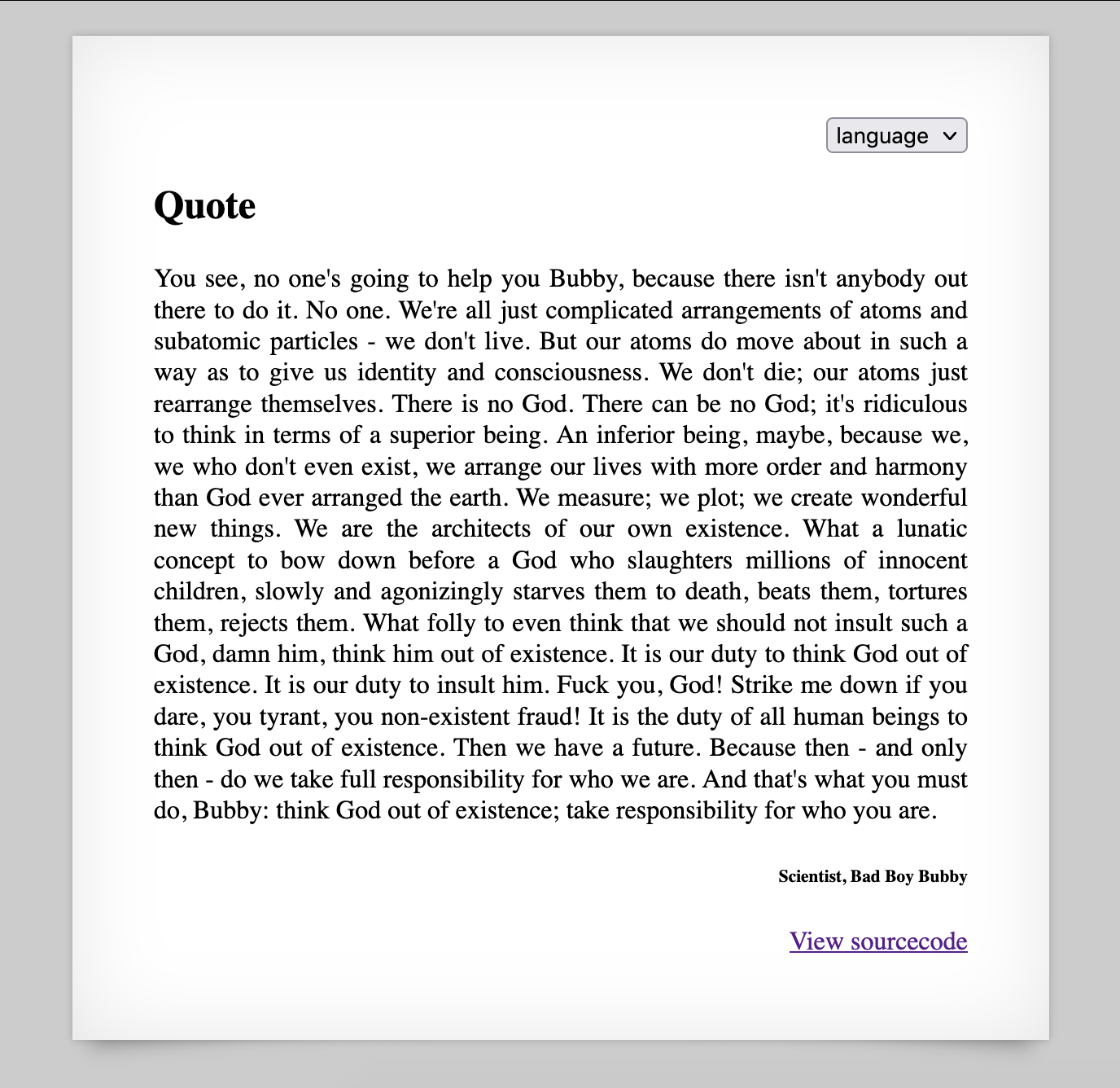 We’re given the source code, so let’s check that out next. When the page loads, each file in the languages/ directory is iterated through, and echoed as an option. For us, this means en and de for English and German, respectively.