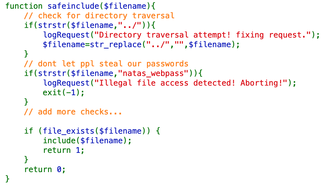 The safeinclude() function also prevents natas_webpass from being included in the request.