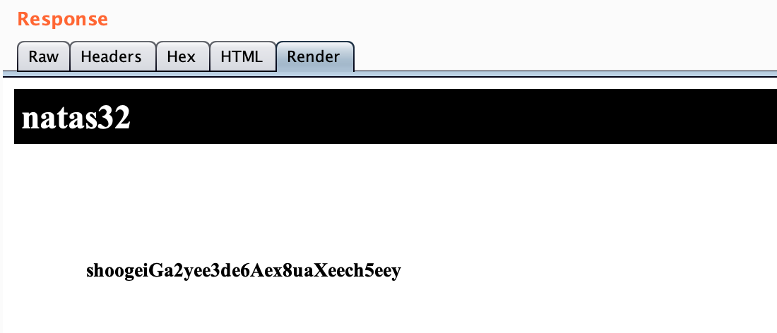 If you open up http://natas32.natas.labs.overthewire.org/ (with credentials natas32 and no1vohsheCaiv3ieH4em1ahchisainge from the previous level), the webpage is nearly identical to last time: