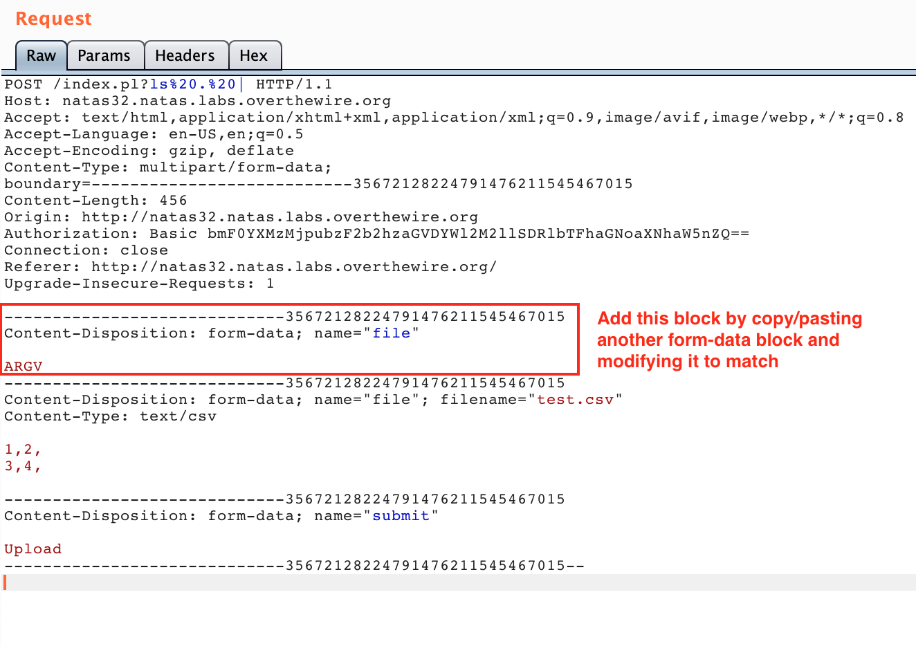 We need to make two modifications. First, copy/paste one of the form-data sections and modify it as shown in the red box: