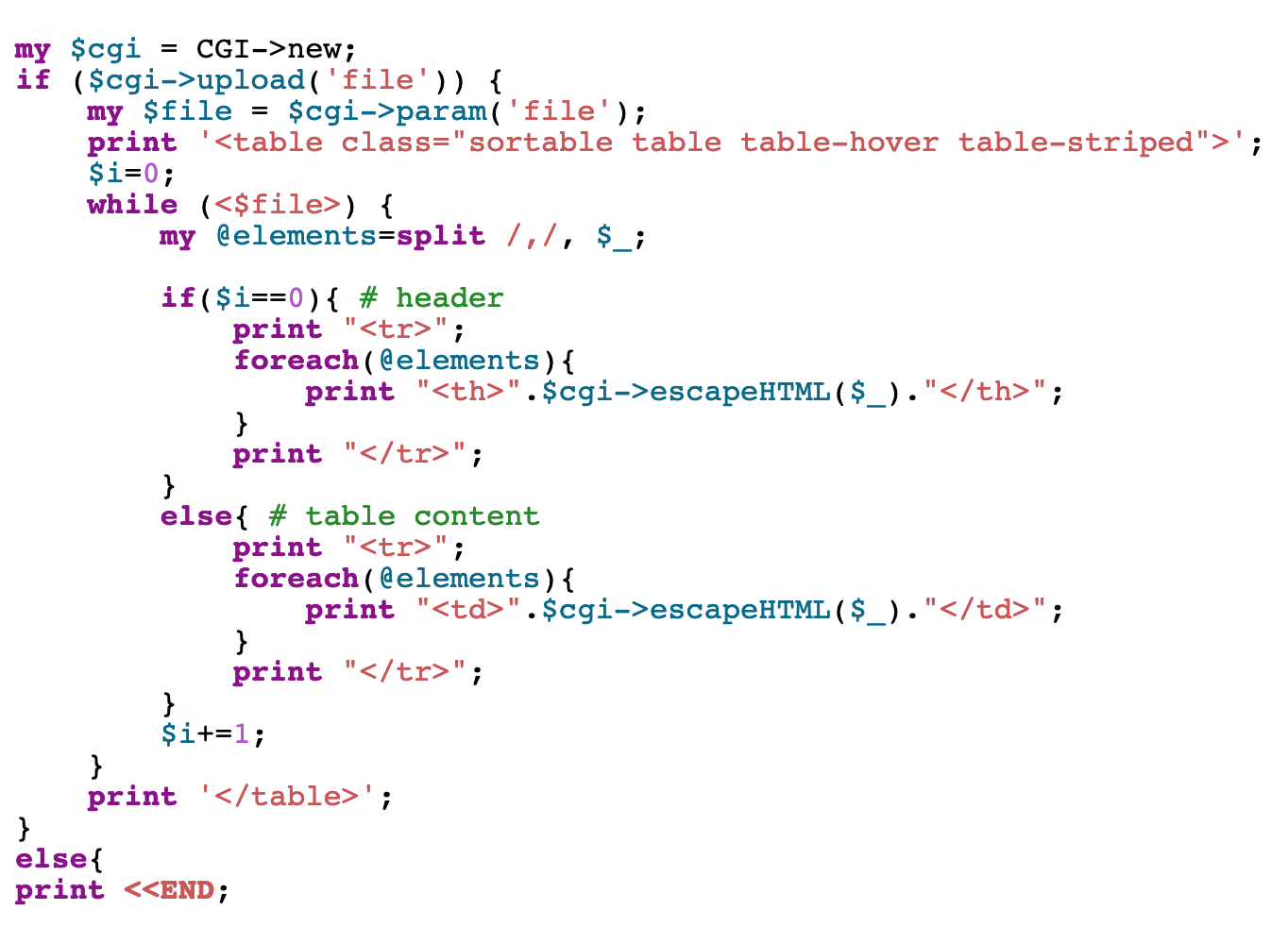 This change is sending an additional file, ahead of the “real” CSV file, with content ARGV such that the open() call will iterate through the values we provide, as described earlier.