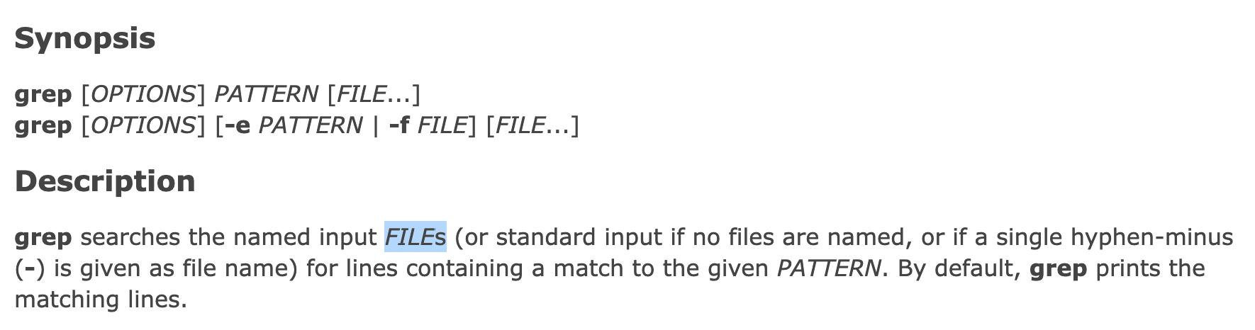 grep -i; ls; dictionary.txtAn equivalent set of commands, written out on separate lines, looks like: