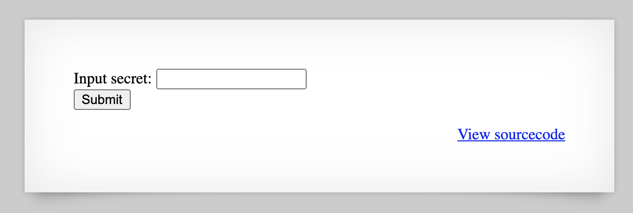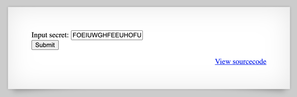 Going back to the main page, let’s submit “FOEIUWGHFEEUHOFUOIU” as our secret: