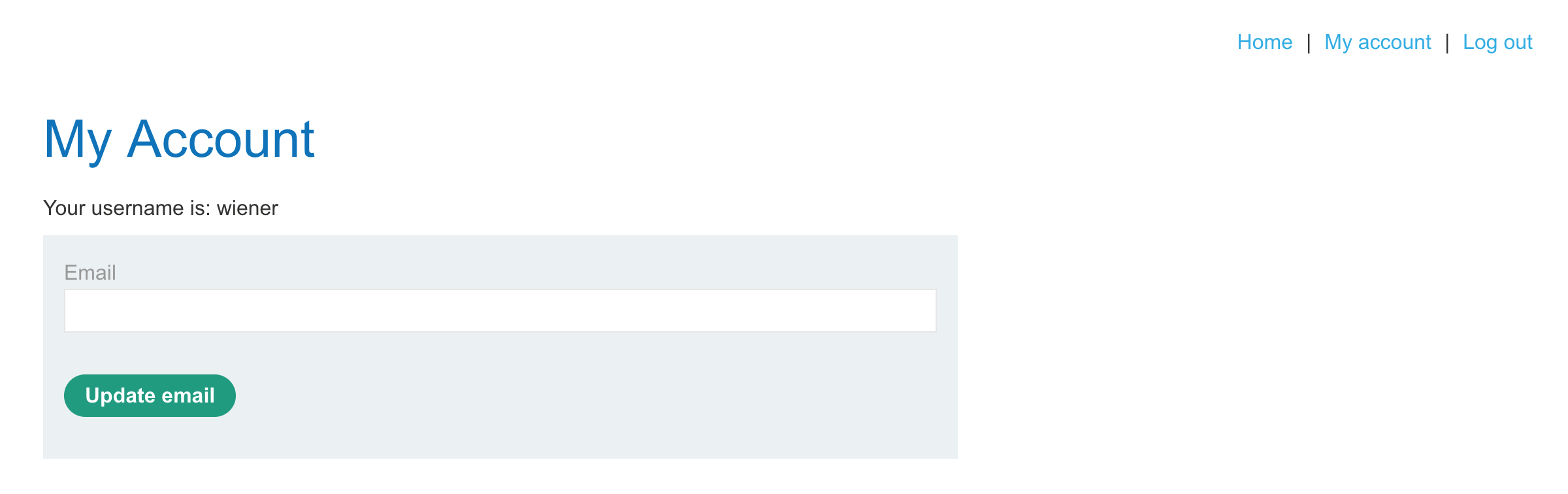 The URL for this page (if you click My Account) is https://<random-string>.web-security-academy.net/my-account?id=wiener. If you try changing the id value, you get logged out.