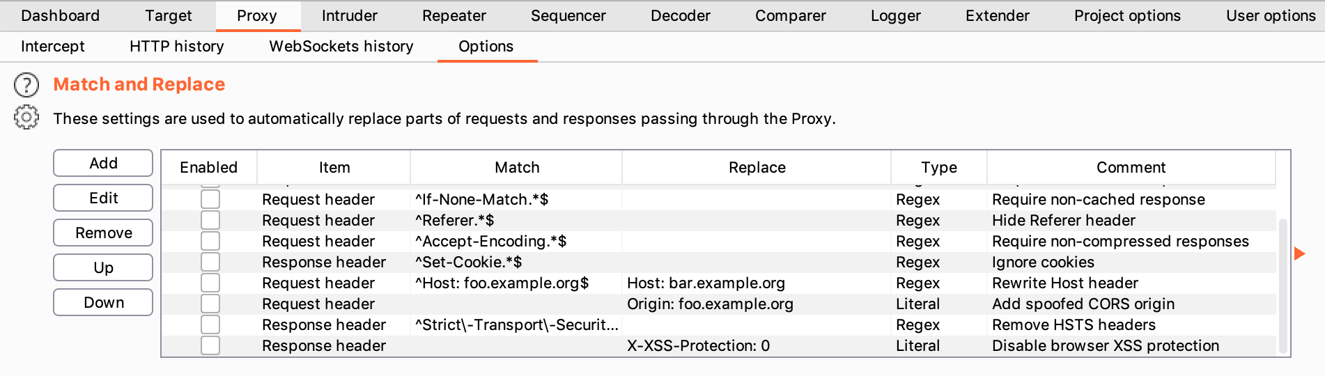 Or we can go into the Proxy > Options tab, and add a custom header. This will allow us to browse normally with the special header added, such that we don’t have to manually edit requests.