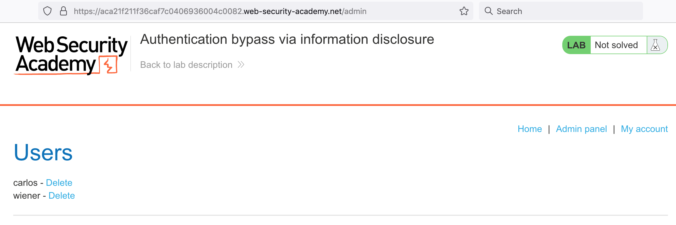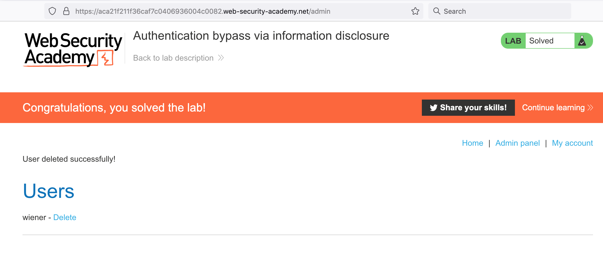 PortSwigger's "Authentication bypass via information disclosure" Walkthrough