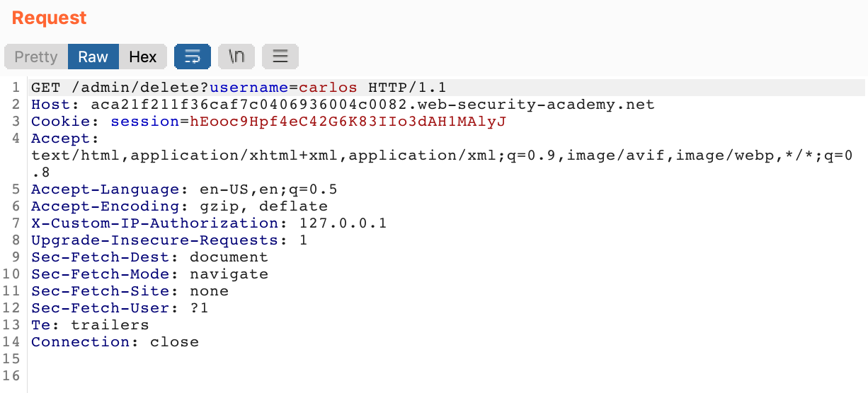 We can either make our own (manually edited) request in the Repeater to delete his account (with our special header still included):
