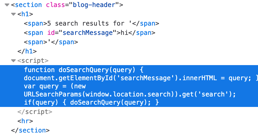 If we search for “hi” (or any other query), then look at the Dev Tools Elements view, we can see this script: