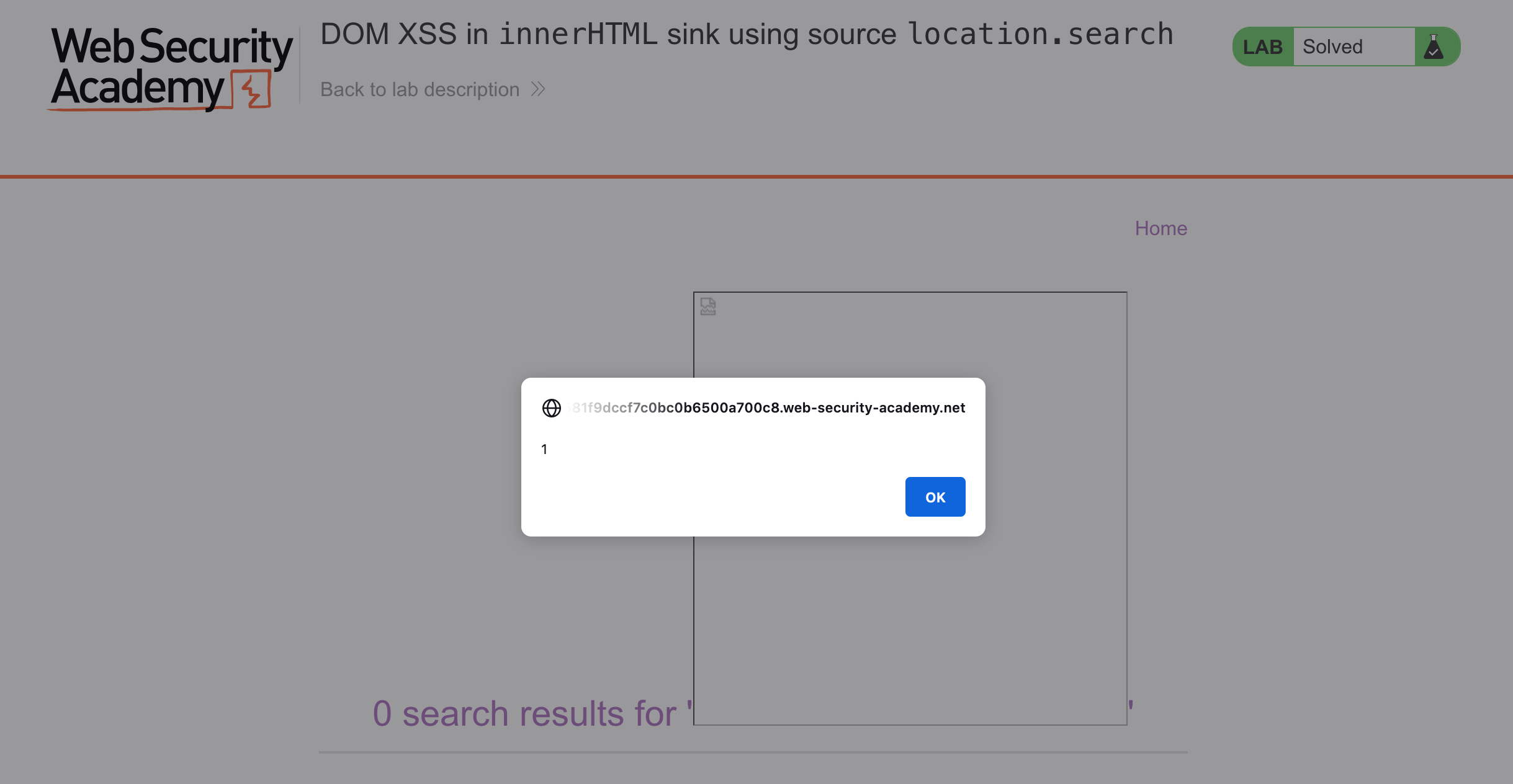 PortSwigger's "DOM XSS in innerHTML sink using source location.search" Walkthrough
