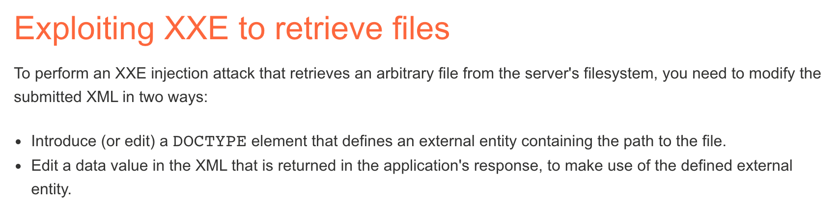The XXE page from PortSwigger covers a variety of different (malicious) applications. The one that’s relevant here is the file read one: