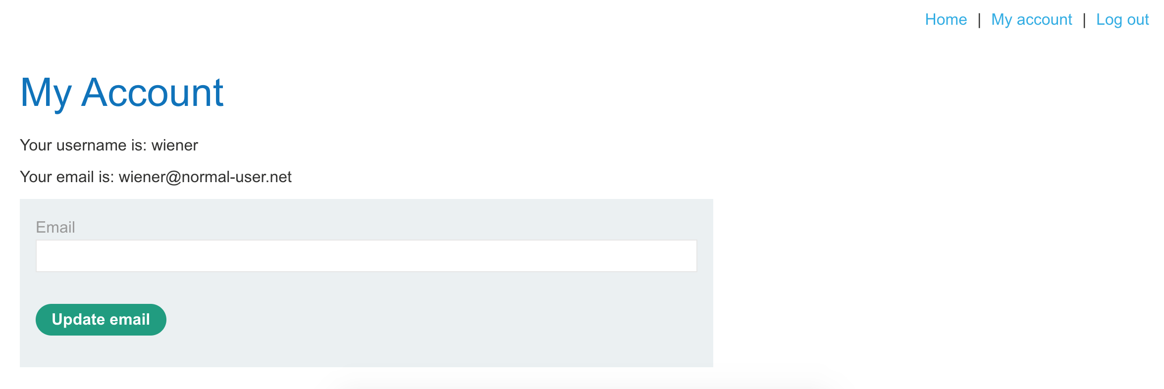 If we log in to the website with username wiener and password peter as provided by the challenge description, we see the usual account page.