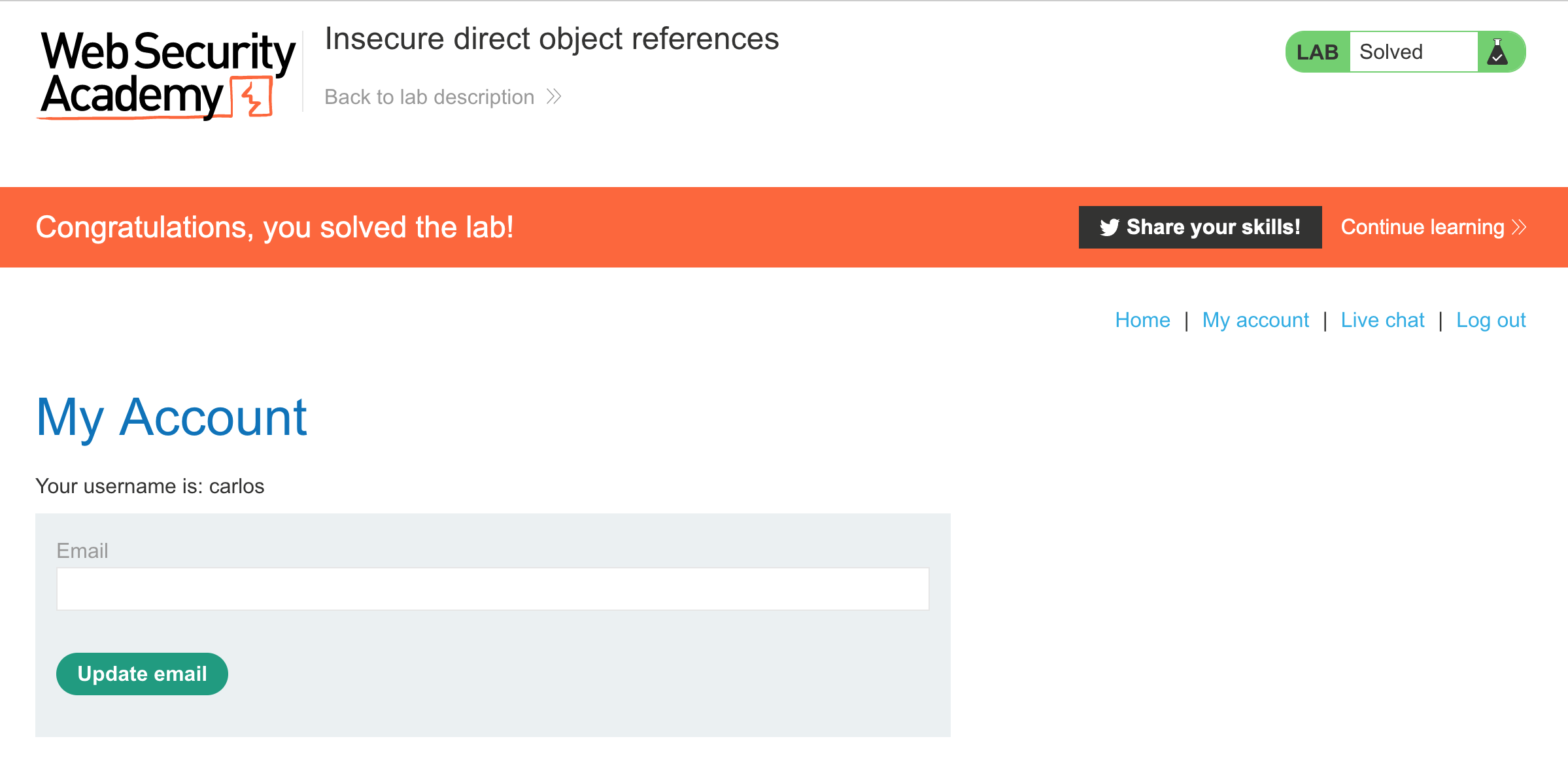 This was a pretty simple IDOR lab (hopefully PortSwigger adds more!)