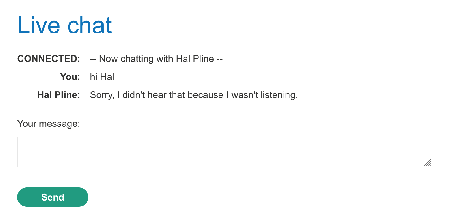 Then send the message. You should see more messages update on the right-hand side, as the to-client message is sent and additional new Hal messages.