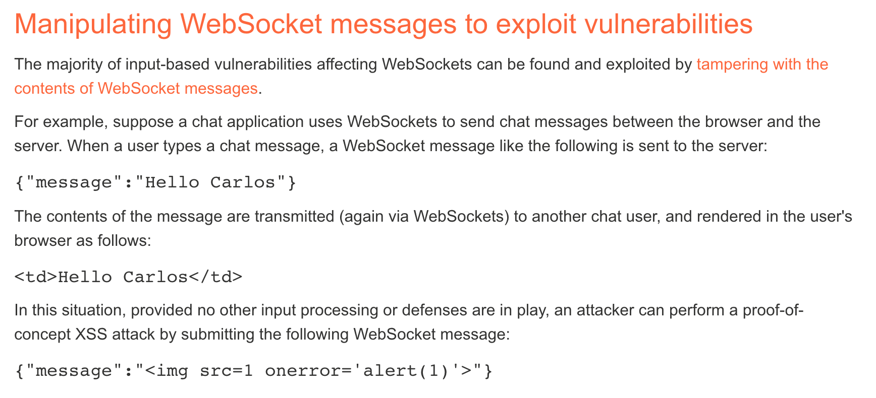 This is from PortSwigger’s WebSockets blog post and likely covers what we’ll need to do: