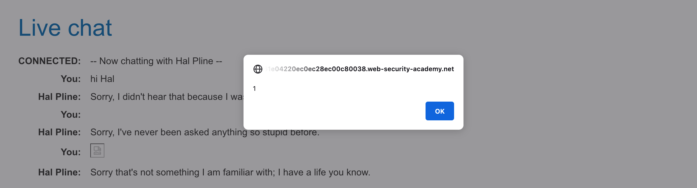 Go back to your browser and you should see an alert, as both you and Hal have been XSSed.