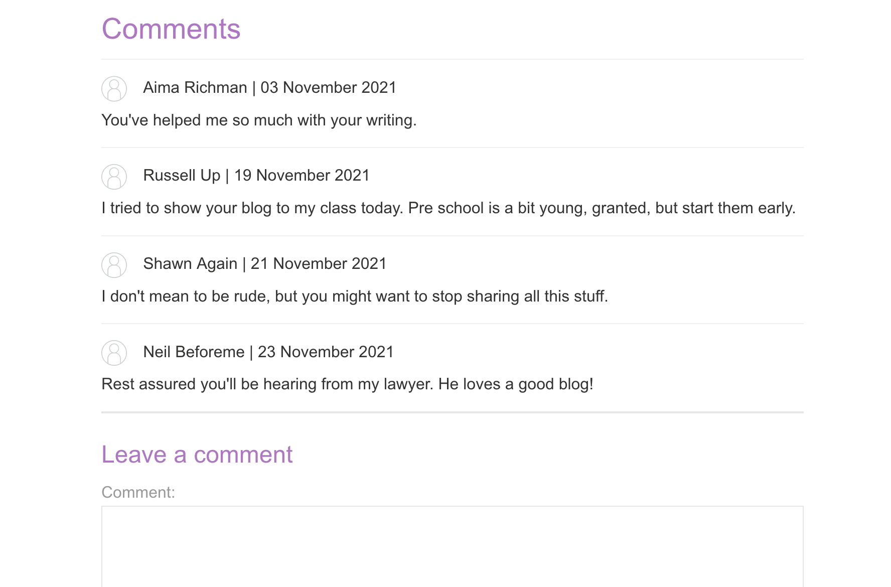 If we make a fake comment with the following attributes: