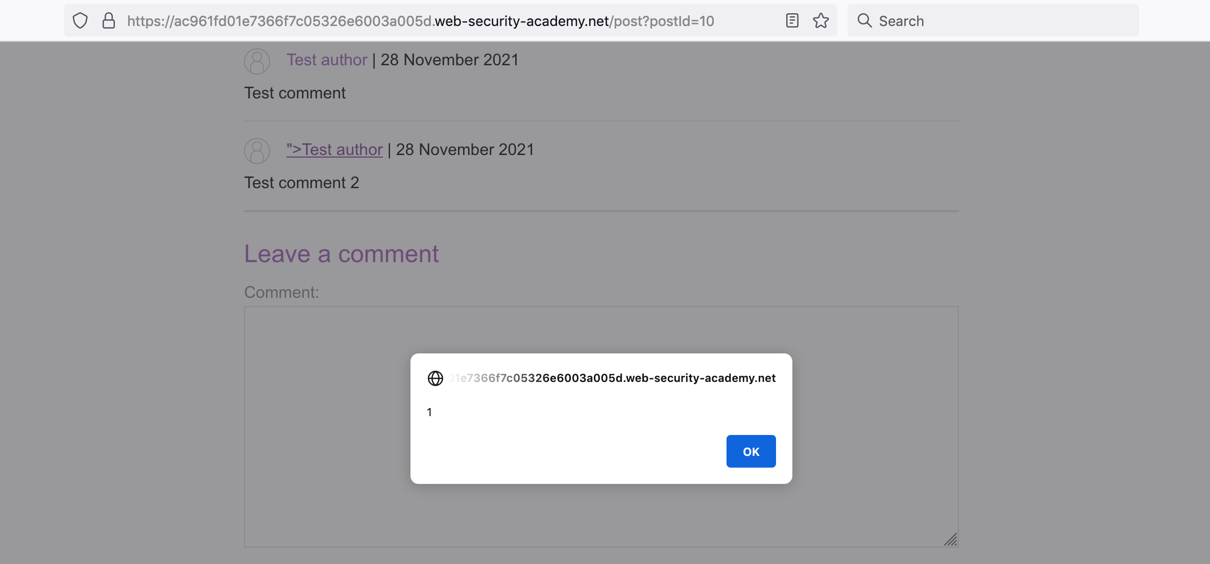 And if we click it, we get an alert and solve the lab!