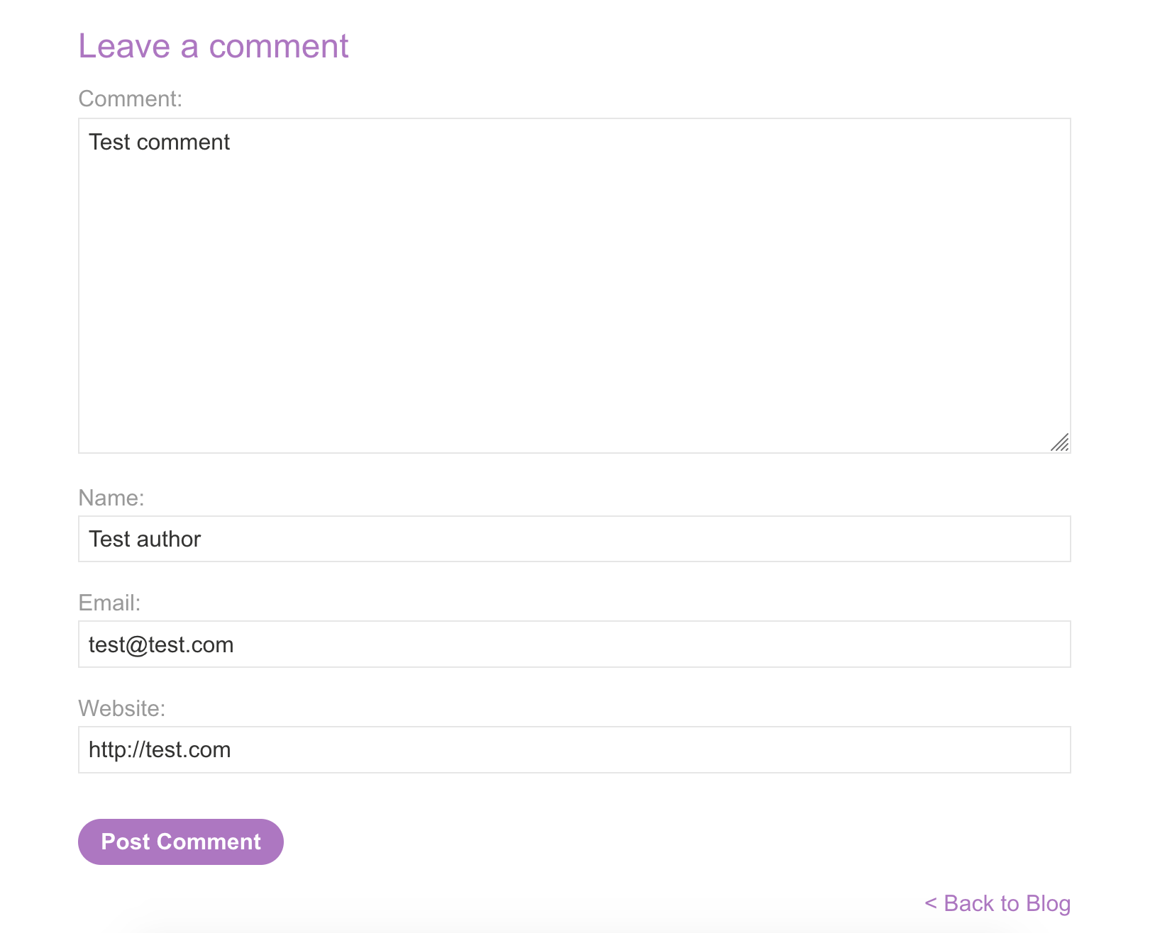 As before, if we visit an individual blog post (such as https://<random-string>.web-security-academy.net/post?postId=10), there’s a comment section:
