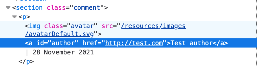 We see that the username creates the username field (obvious, I know) and the provided website is inserted into the href field: