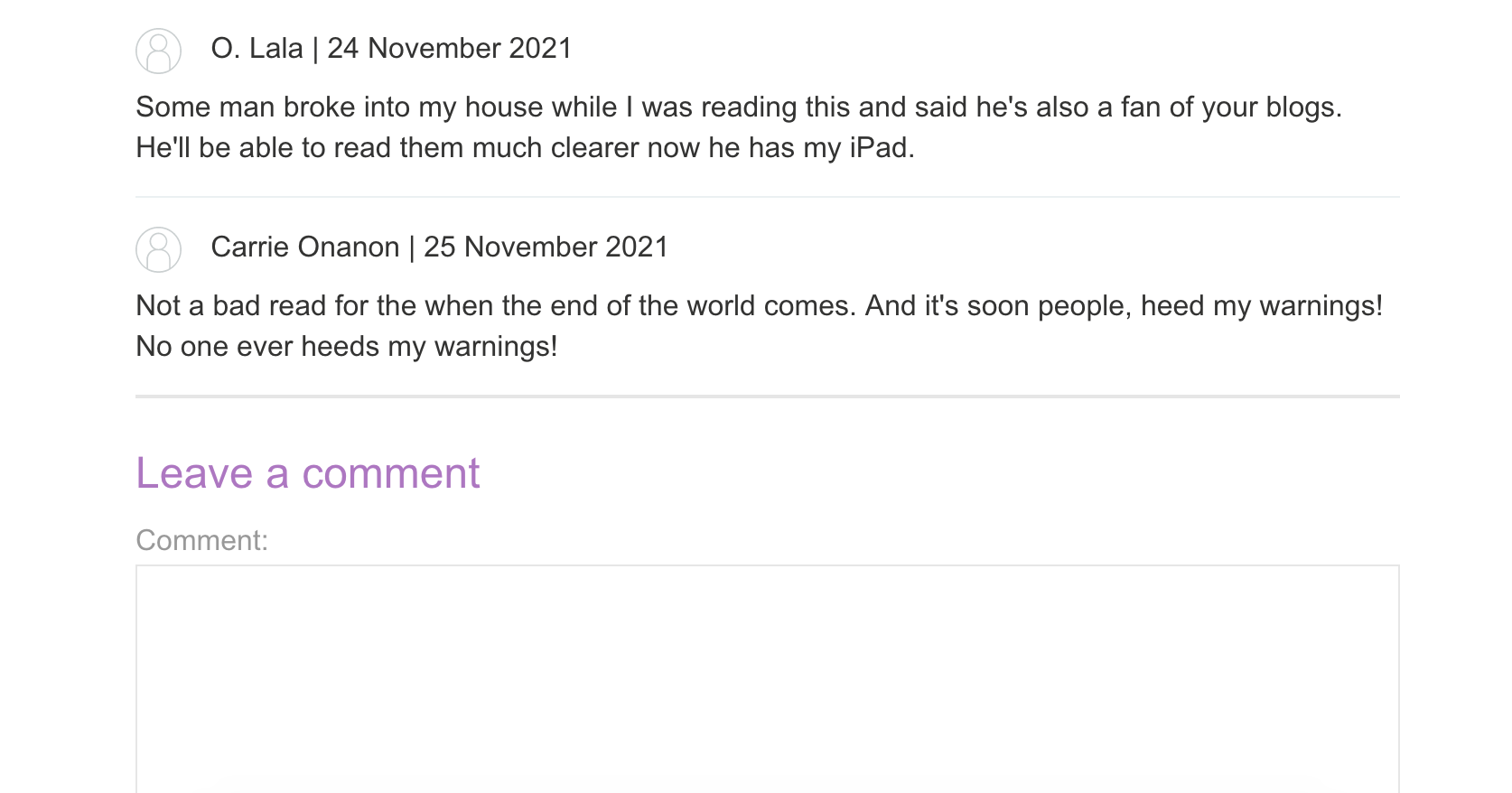 Let’s add our own comment: