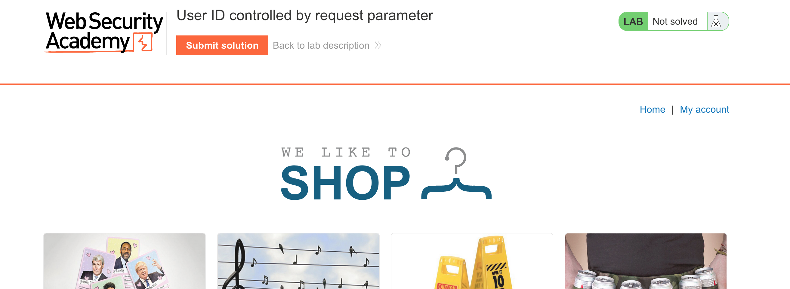 You’ll also need a Portswigger Academy account. Log in and then view the lab at https://portswigger.net/web-security/access-control/lab-user-id-controlled-by-request-parameter. This is accessible from the “all labs” view.