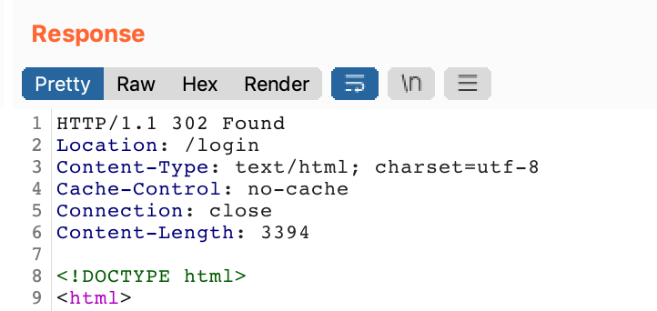 We know there’s something going on with the direct, and we know that we are being redirected (since we’re sent back to the login page), so let’s try inspecting it in Burp Suite.