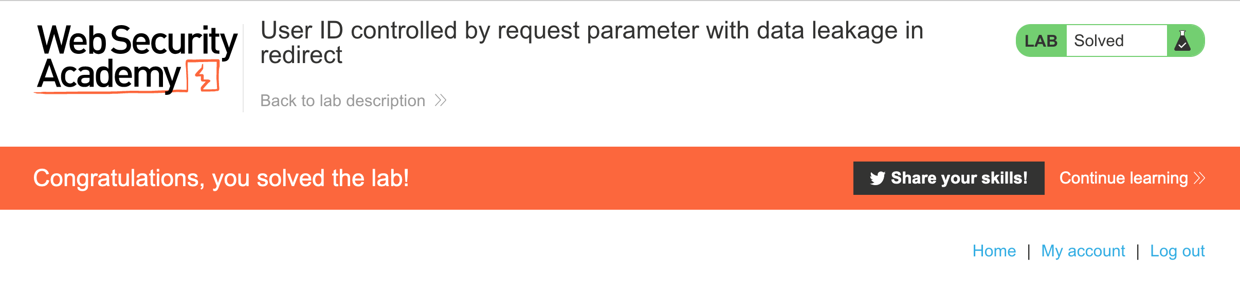 This is a write-up of of PortSwigger Academy’s “user ID controlled by request parameter with data leakage in redirect” lab.