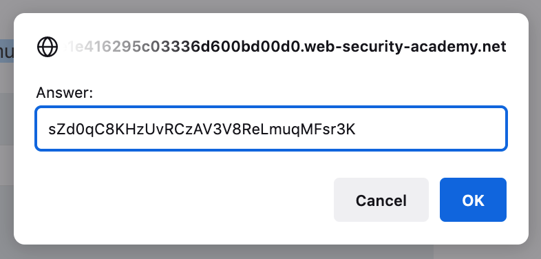 In this case, it’s https://<random-string>.web-security-academy.net/my-account?id=363835e6-d5d1-4284-9ef2-8507067b06c1.