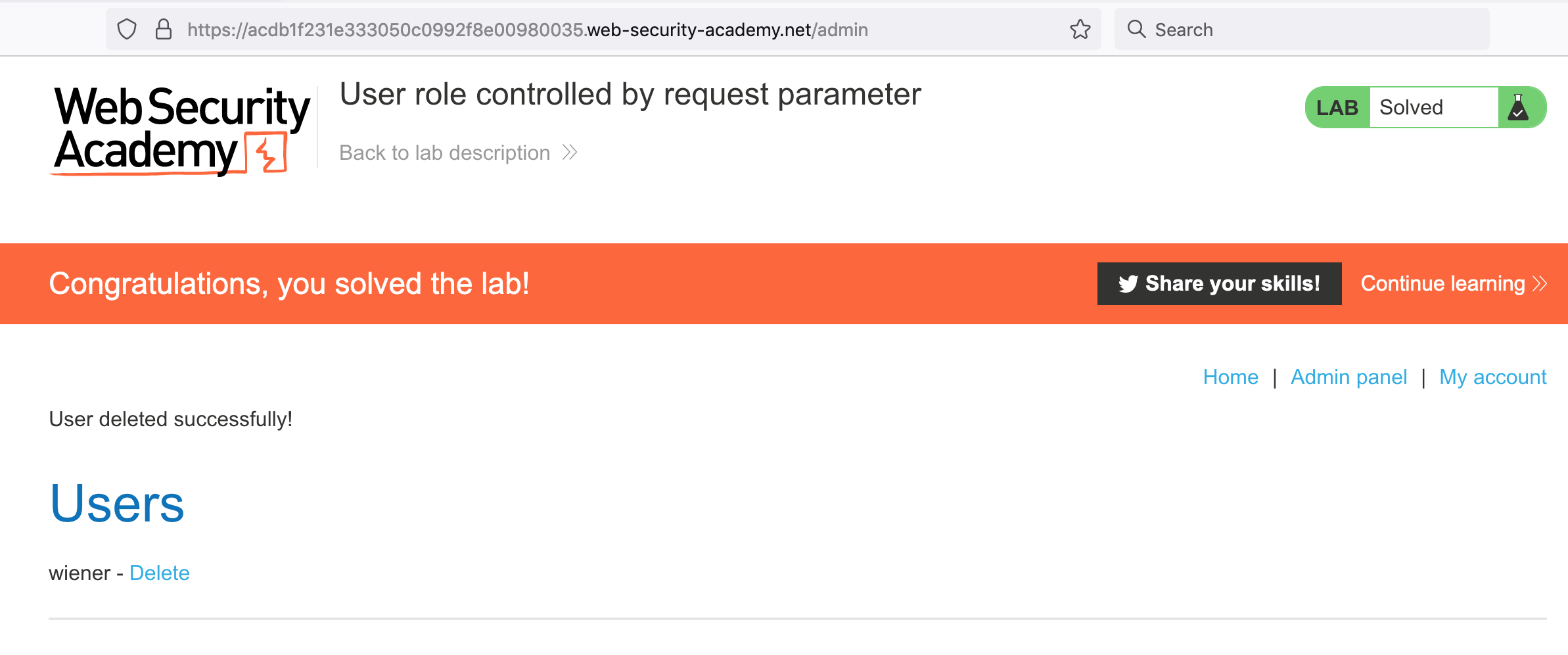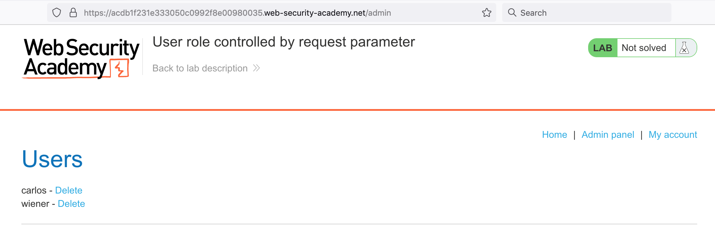 PortSwigger's "User role controlled by request parameter" Walkthrough